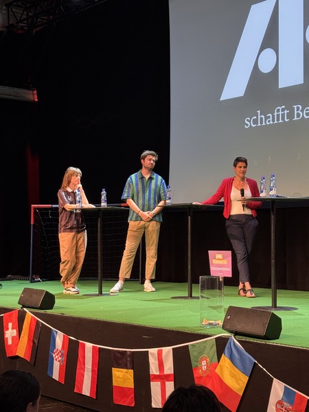 Einig waren sich alle: Die Europameisterschaft war eine grosse Freude. Nun gelte es, den Schwung mitzunehmen, damit der Frauenfussball nicht zu einer „Eintagesfliege“ werde, wie es Fabienne Humm formulierte. Die 45-minütige, von Karin Zimmermann (SRF Regionaljournal Aargau Solothurn) moderierte Diskussion stiess auf grosses Interesse, sowohl vor Ort, als auch in den Gesprächen danach. Zwischen dem Ende der Diskussion und dem Anpfiff des Public Viewings waren immer wieder Gesprächsfetzen zum Thema Medien und Frauenfussball zu hören, ein Zeichen, dass der Anlass zum Nachdenken angeregt hat.