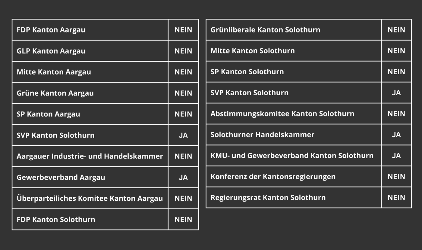 SRG-Initiative: Parolen und Abstimmungsempfehlungen in den Kantonen Aargau und Solothurn