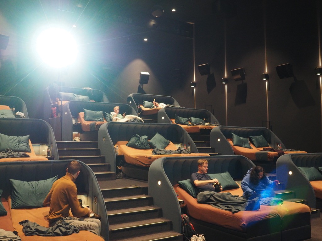 Um 13:00 Uhr öffneten sich die Türen zum Saal 9 des Pathé Kinos in Spreitenbach. Wer harte Kinosessel erwartete, wurde enttäuscht – im positiven Sinne. Gemütliche Lounge-Betten, Kuscheldecken und ein „Rundum-sorglos-Paket“ an Snacks und Getränken sorgten für die perfekte Bingewatching-Atmosphäre. Diese Gemütlichkeit stand in starkem Kontrast zur gezeigten Kost: Petra Volpes Drehbuch zur Serie „Frieden“ entführte das Publikum ins Jahr 1945. Sechs Stunden lang - unterbrochen nur durch regelmässige Snack-Pausen - litt und fieberte der Saal mit der Fabrikantenfamilie Tobler, dem Überlebenskampf junger KZ-Häftlinge und den Ermittlungen von Egon Leutenegger mit.