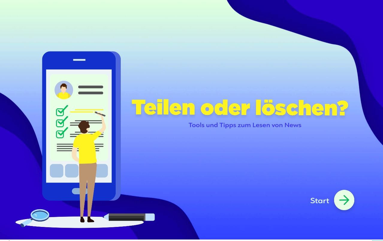 Zum Auftrag der SRG AG SO gehört neben der Diskussion über medienrelevante Themen auch die Medienbildung. Aus diesem Grund haben wir die Gelegenheit ergriffen und im Nachgnag zur Ausstellung «Fake» des Stapferhauses in Lenzburg ein Spiel zur Beurteilung von Nachrichten in eine Webapp umfunktionieren lassen. Herausgekommen ist dabei die Webapp «Teilen oder löschen?».