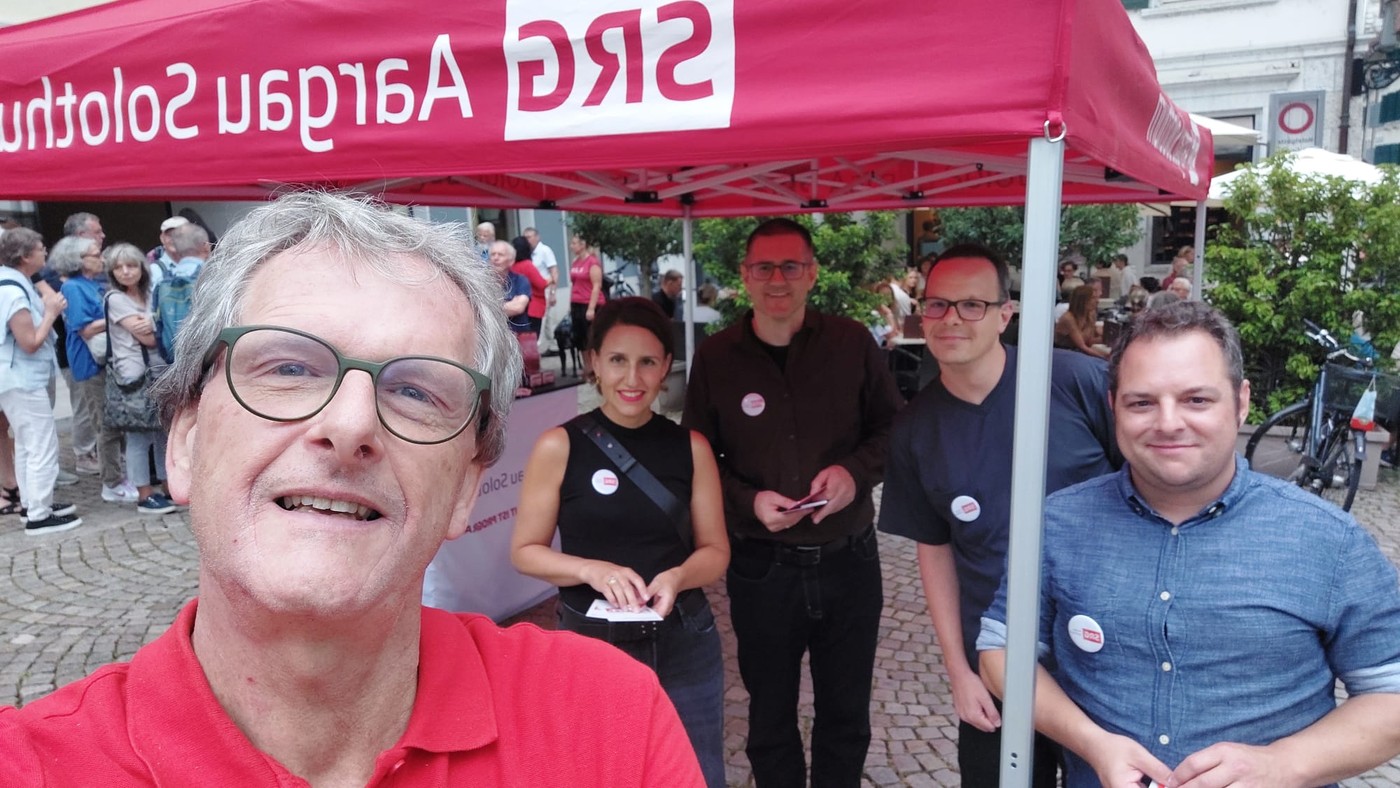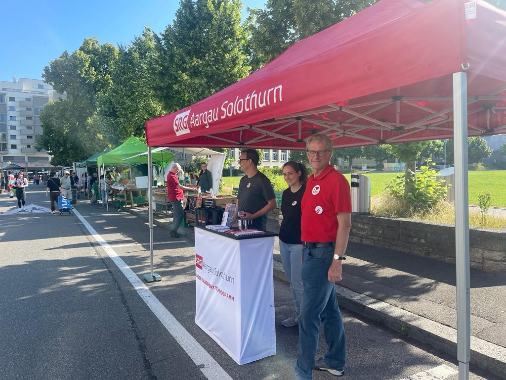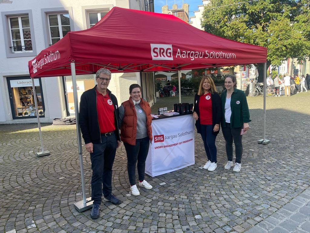 «Die SRG ist ein Verein? Das habe ich nicht gewusst.» Das ist eine der häufigsten Aussagen, die die Vertreterinnen und Vertreter der SRG Aargau Solothurn hören, wenn sie an einem der Wochenmärkte in der Region auftreten. Seit bald zehn Jahren gehört die Marktpräsenz zu den wichtigsten Aktivitäten der Mitgliedgesellschaft. Auslöser war die Abstimmung zum Radio- und Fernsehgesetz – danach war der Vorstand aber entschlossen, unabhängig von der politischen Agenda den Kontakt zum Publikum auf diesem Weg zu pflegen. Nun, wo die nächste Abstimmung absehbar ist, ist der Auftritt an Märkten längst Gewohnheit. Der Vorwurf, nur dann den direkten Kontakt zu suchen, wenn wieder über die Zukunft der SRG abgestimmt wird, ist hinfällig.